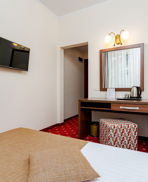 Camera Single Standard este concepută pentru oaspeții care călătoresc individual și apreciază un spațiu eficient, bine organizat și confortabil. Designul modern și dotările esențiale oferă un ambient relaxant, ideal pentru odihnă după o zi activă în oraș sau întâlniri de business.