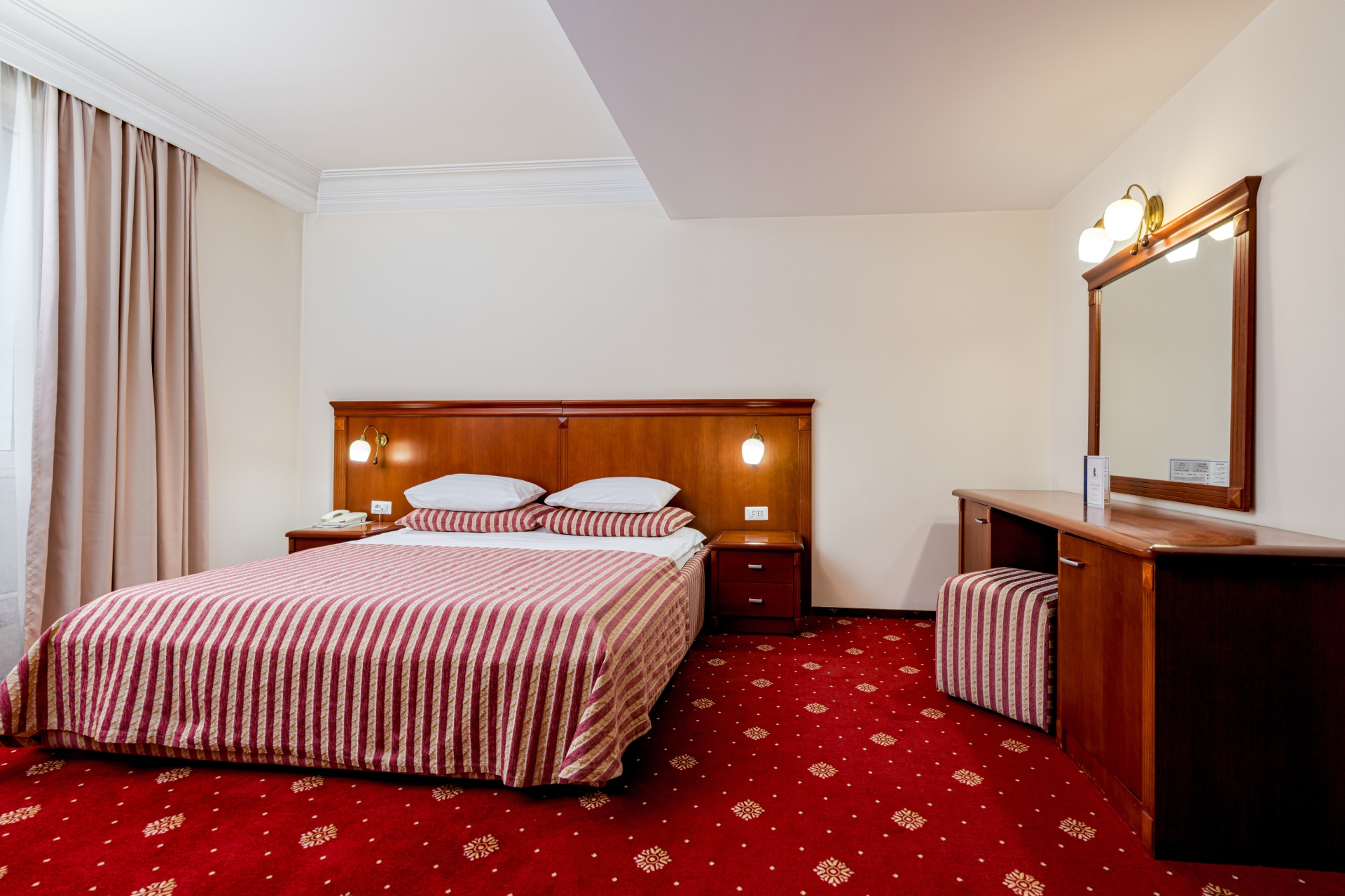 Camera Superior se remarcă printr-un design contemporan și un nivel ridicat de confort, fiind alegerea ideală pentru oaspeții care apreciază detaliile bine definite. Spațiul este generos, luminos și atent organizat, oferind un echilibru perfect între funcționalitate și estetică, pentru un sejur relaxant și plăcut.